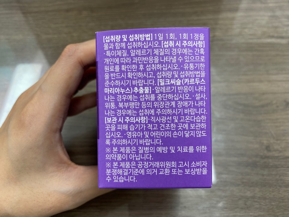 하루에 1정만 섭취하면 되니 간편하고, 특별히 맛이 쓰거나 이상하지 않습니다.